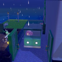 (このスクショは電球設置前に撮影したので暗いですが)ショーウインドウから店番をしているところが見えます。…頭だけだな。