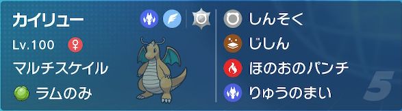 物理受けもできるだけの耐性があり、カイリューの1舞じしんも安定して受けられるので、じこさいせいも合わせて相当粘れます。ひこうテラスは相手のじしんをすかすのに有効ですが、テラスを切ると耐性が極端に落ちるので慎重さが求められました。