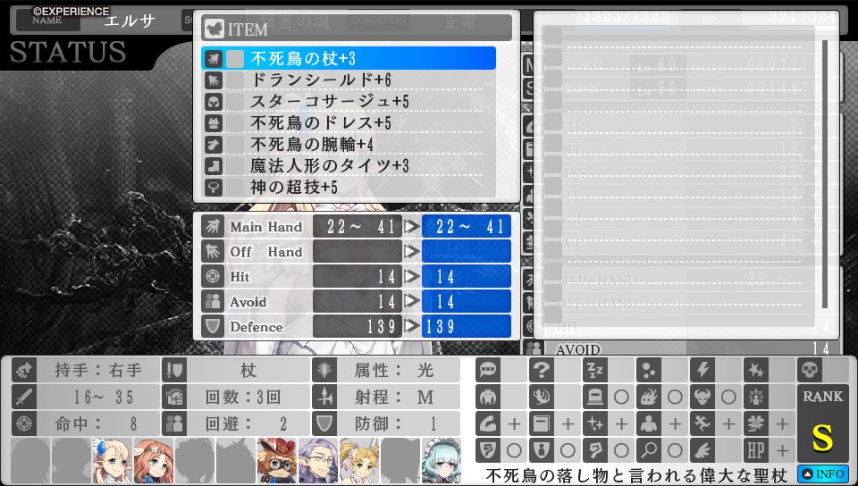 戦闘時の動きはエルサと概ね同じ。魔法メインのパーティだからか、今作の特性か、命中や回避を上げなくても力押しで進められたので、補助術はほぼスルーでいいです。