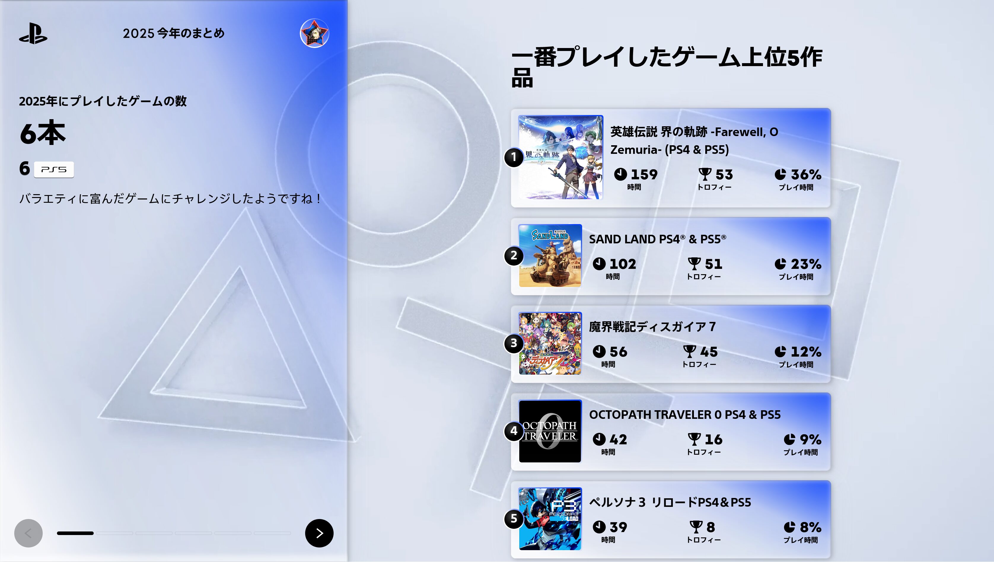 yukkun20もなんとなくそんな印象だったのですが、プレイ本数もプレイ時間もここ3年は横ばいくらいなので、あまり変化はないのだと思います。結局マルチの作品はトロフィーのためPS5でプレイしますからね…