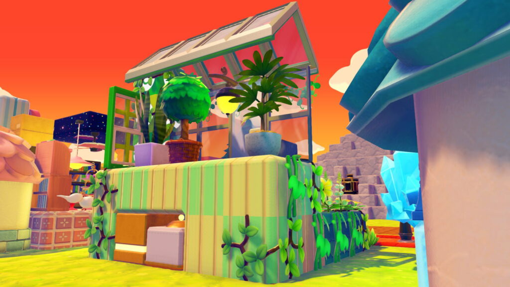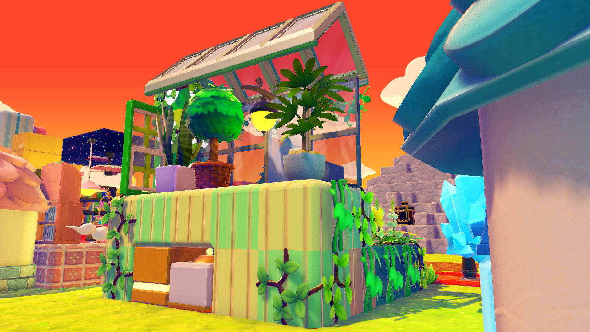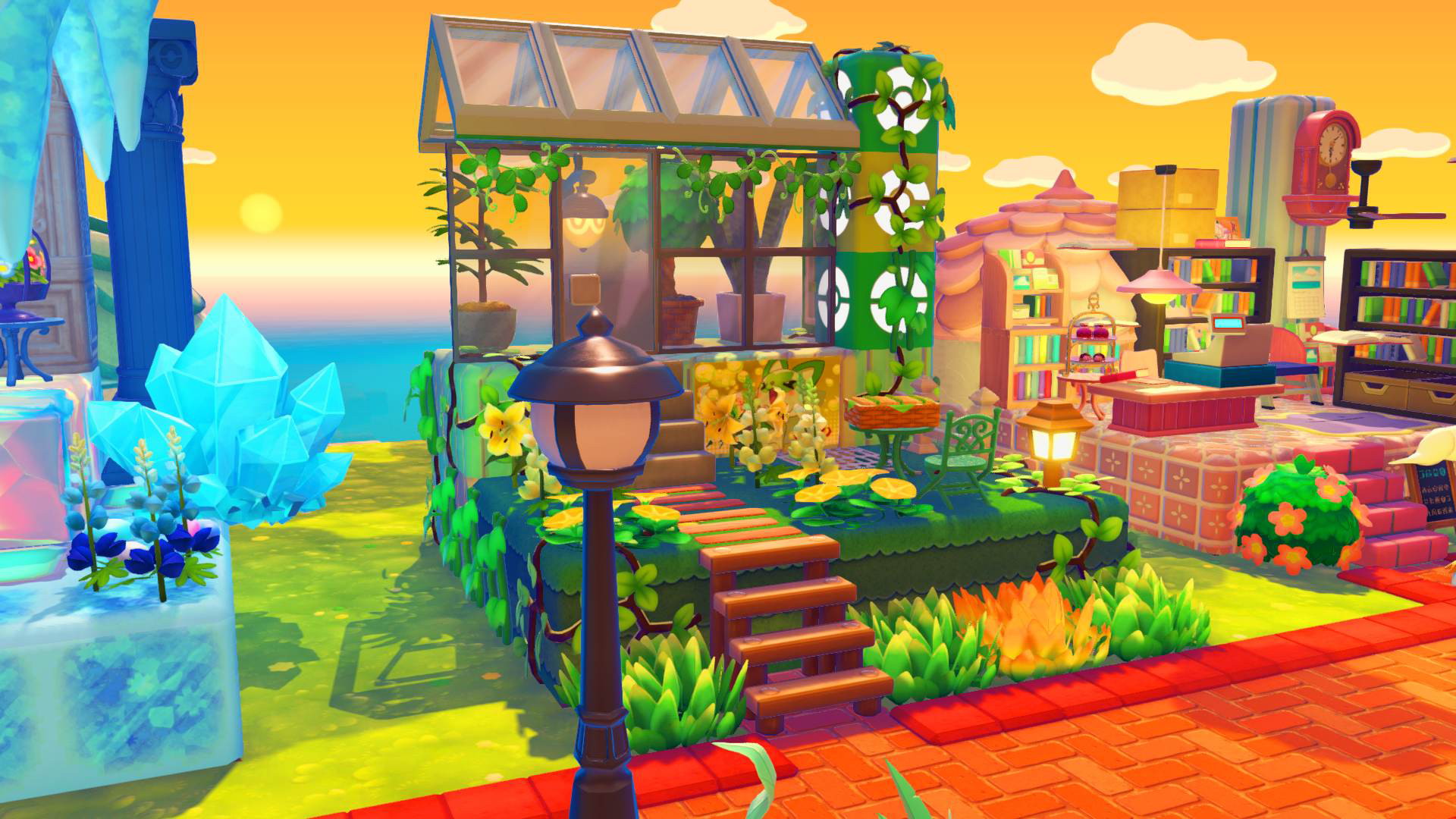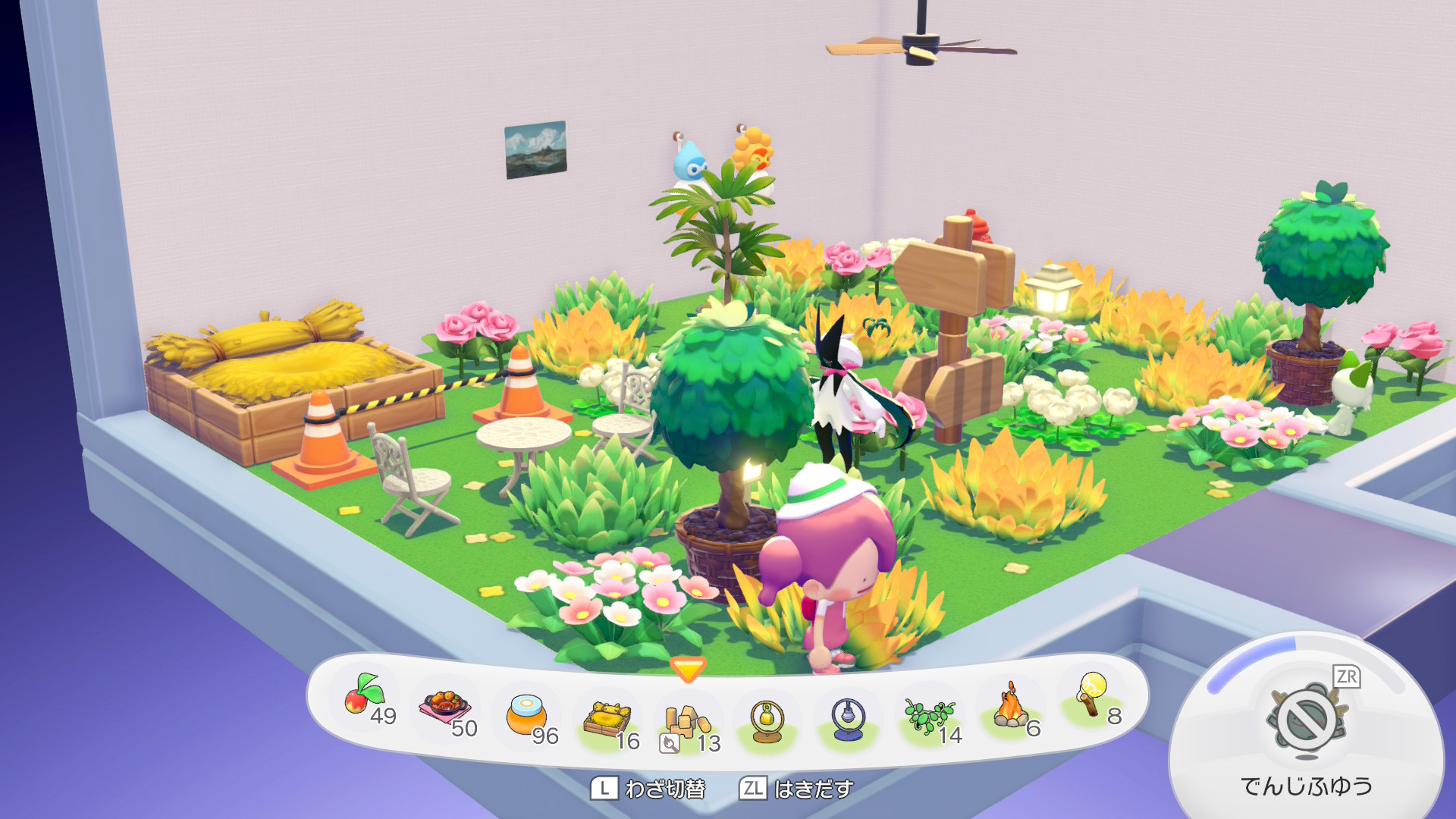 例によって裏には家を建てて、ニャオハとマスカーニャに住んでもらうことにしました。部屋は植物園の中…というイメージで、ひたすら植物を植えました。本当は植物園だから木とかも植えたいんですけど、あいにく室内は木は配置出来ないんですよね。あと屋外をイメージ出来るような壁紙が欲しいところです。