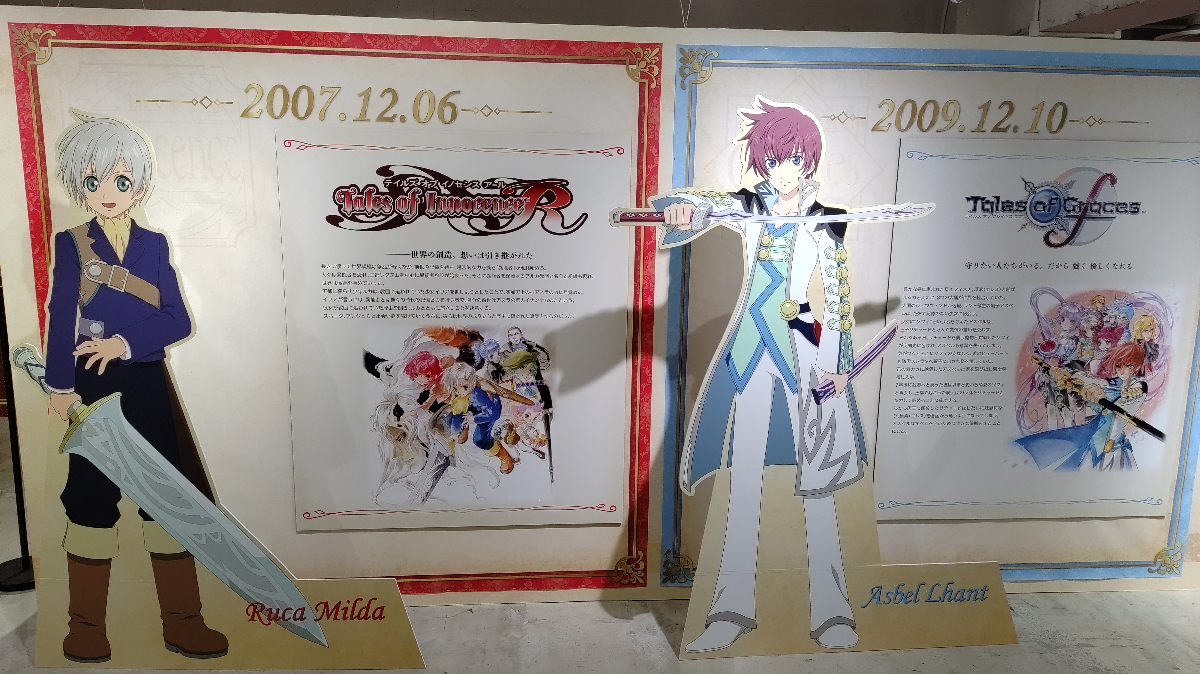 テイルズオブシリーズ30周年を記念して開催された展覧会です。開催期間は2期に分かれていて、12/17までが第1期で、P/E/S/L/ラタトスク/V/H/X/X2/アライズが、12/19からは第2期で、D/D2/R/A/T/I/G/Z/Bがメインで展示されています。yukkun20はPとVとSが好きなので当然第1期に…と言いたいところですが、地方民にそんな余裕はないので、テイオケと重なっている第2期に行ってきました。