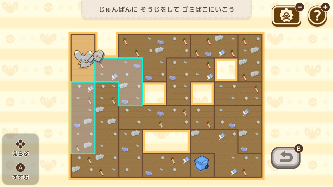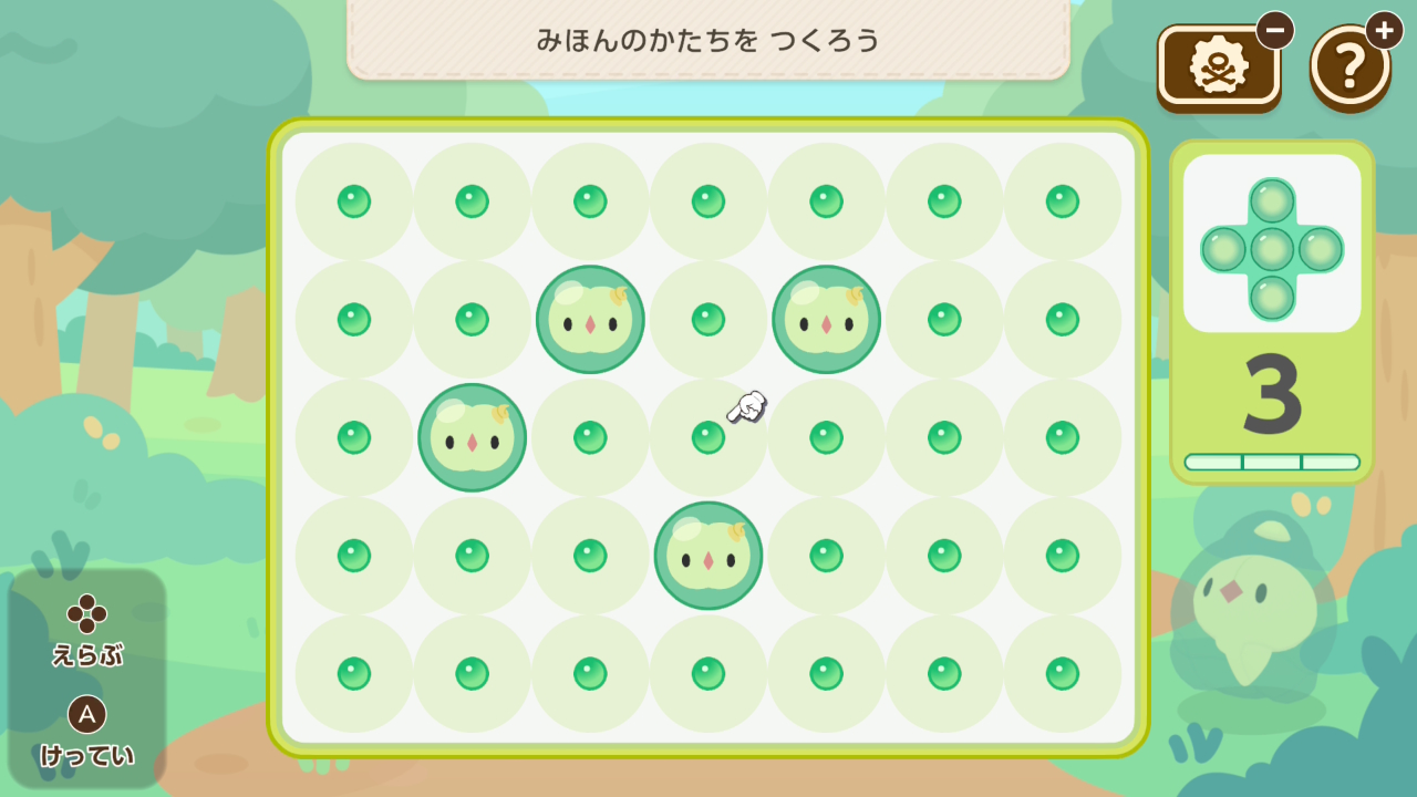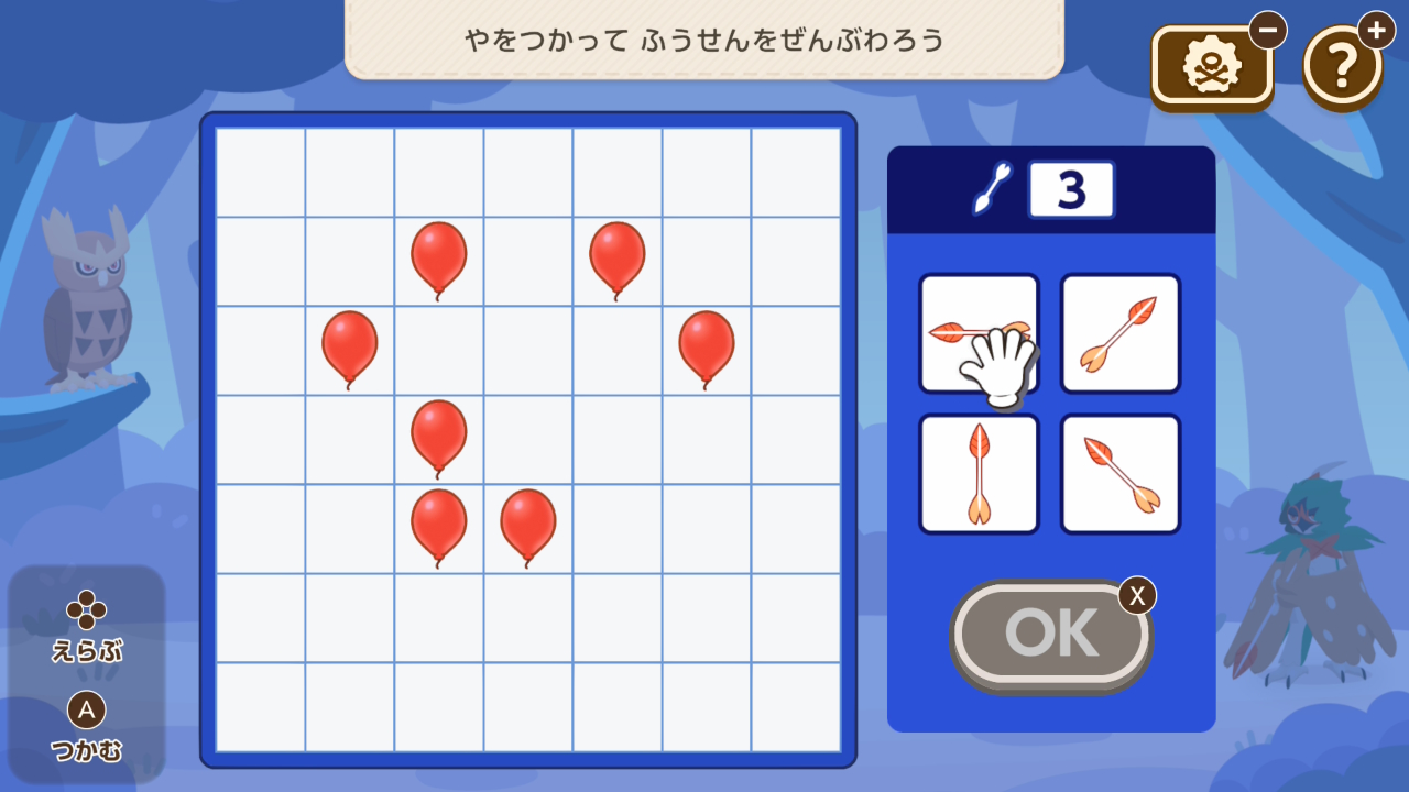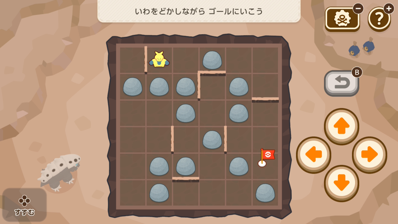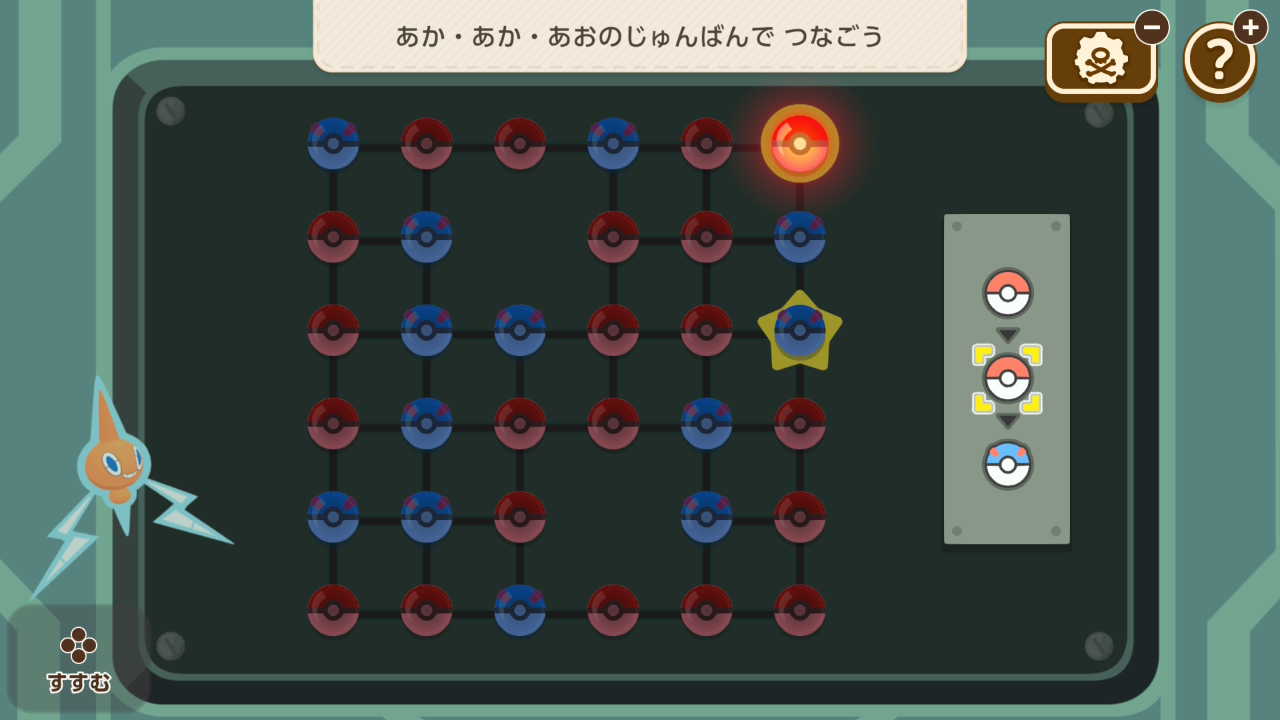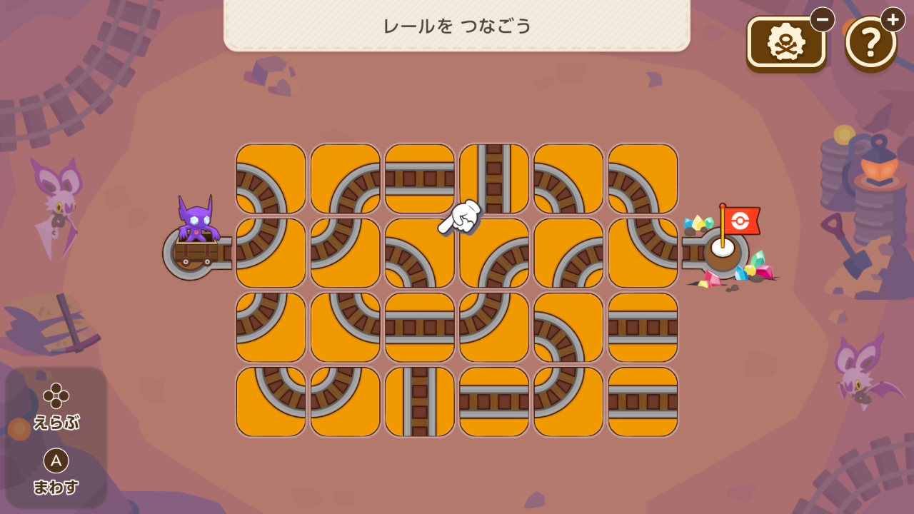 ポケモンの向きを変え、その進路がぶつからないように配置するミニゲーム。難易度は高くないですが、一度ミスするとリカバリーするには時間が足りないことが多いです。