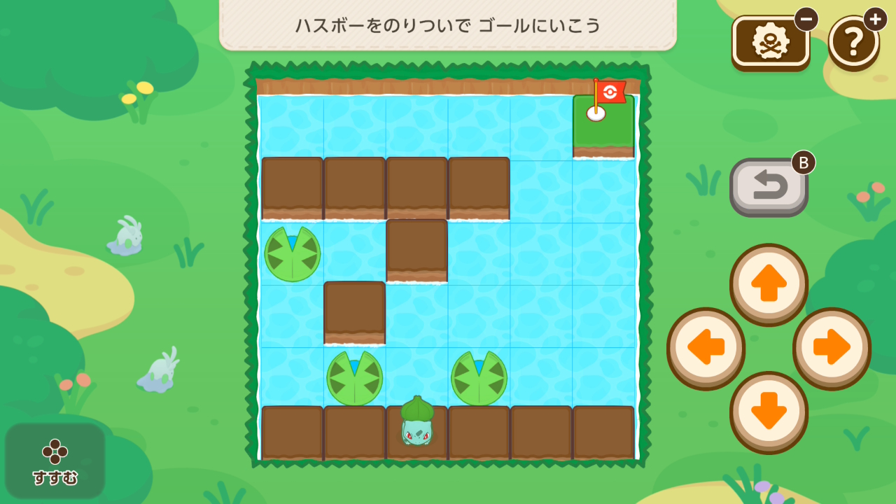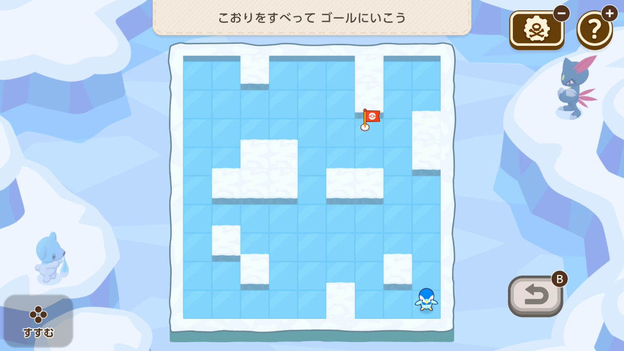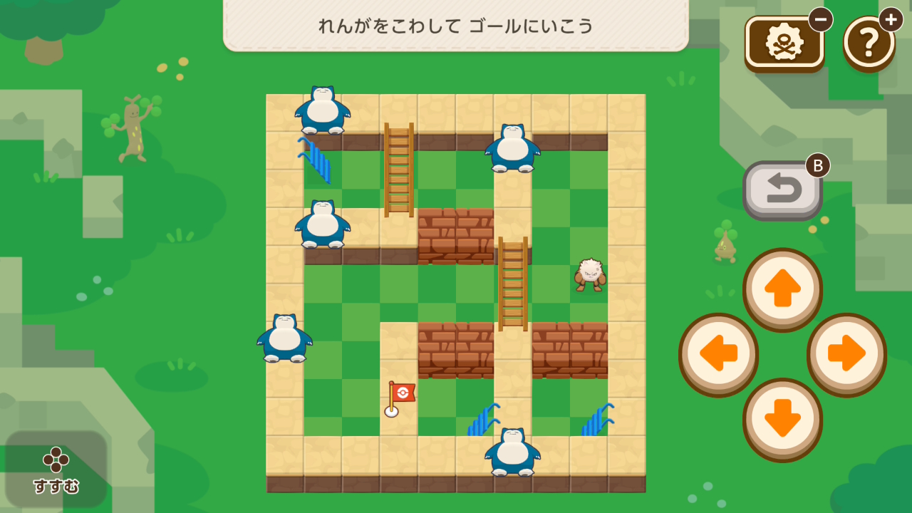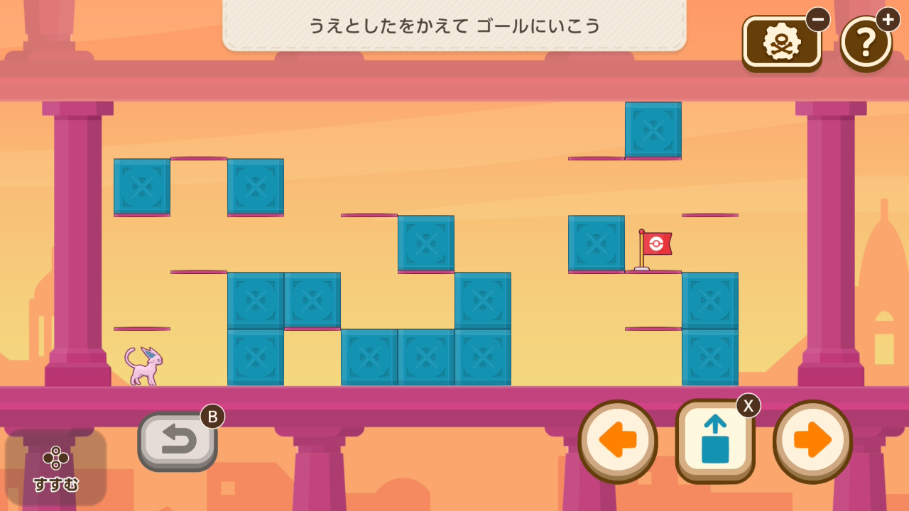1段の段差しか登り降りできないニャビーをゴールまで導くミニゲーム。試行錯誤でどうにかなるレベル。問題数も少ないので難易度は低いかな。