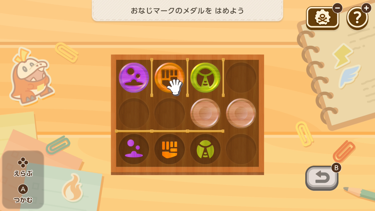 - 正解の場所にメダルを嵌めるともう動かせず通過も出来なくなるので、奥に位置するパネルからはめていく(↑だと毒→闘→虫の順)
