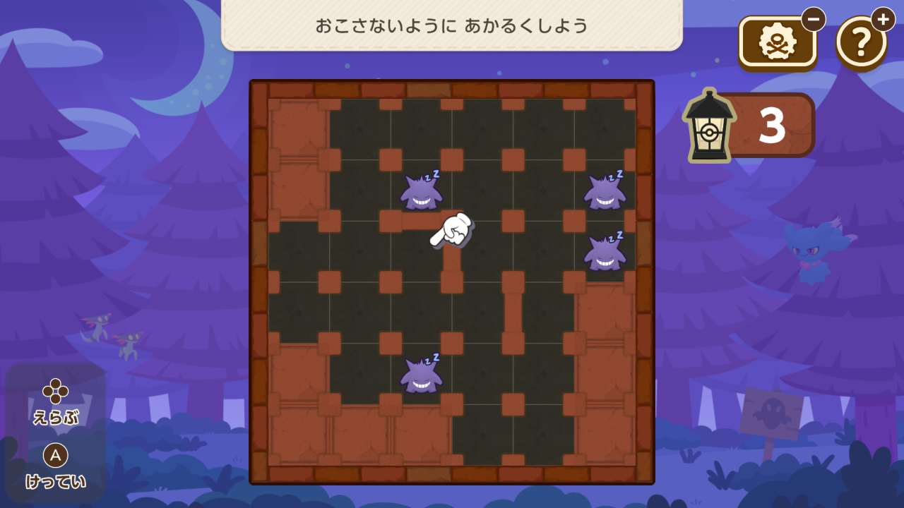 上下左右のマスを照らすランタンを、ゲンガーを照らさないように配置するミニゲーム。論理的に解決出来るので好き。