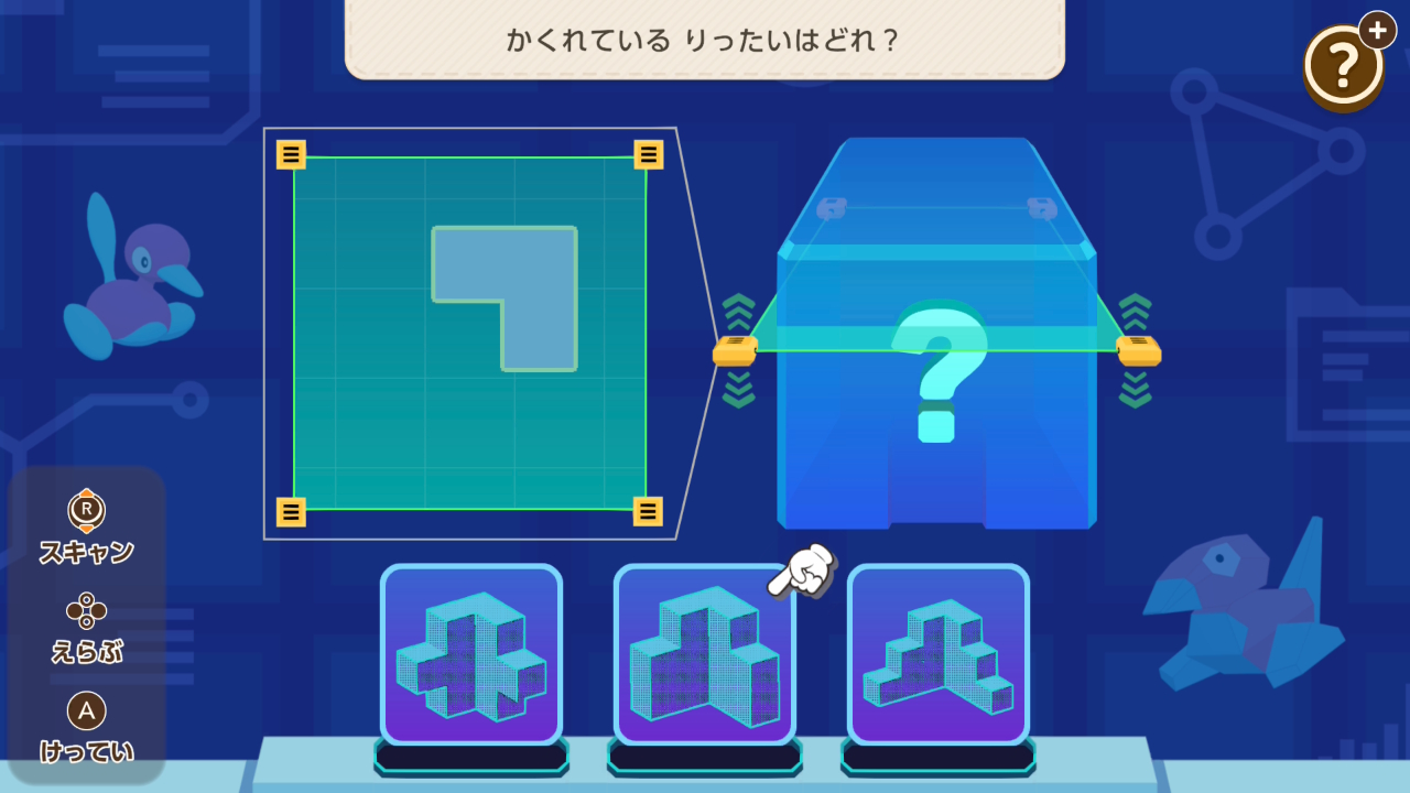 水平断面図を参考に、中身の形を当てるミニゲーム。中身が傾いているとかなり難易度上がります。