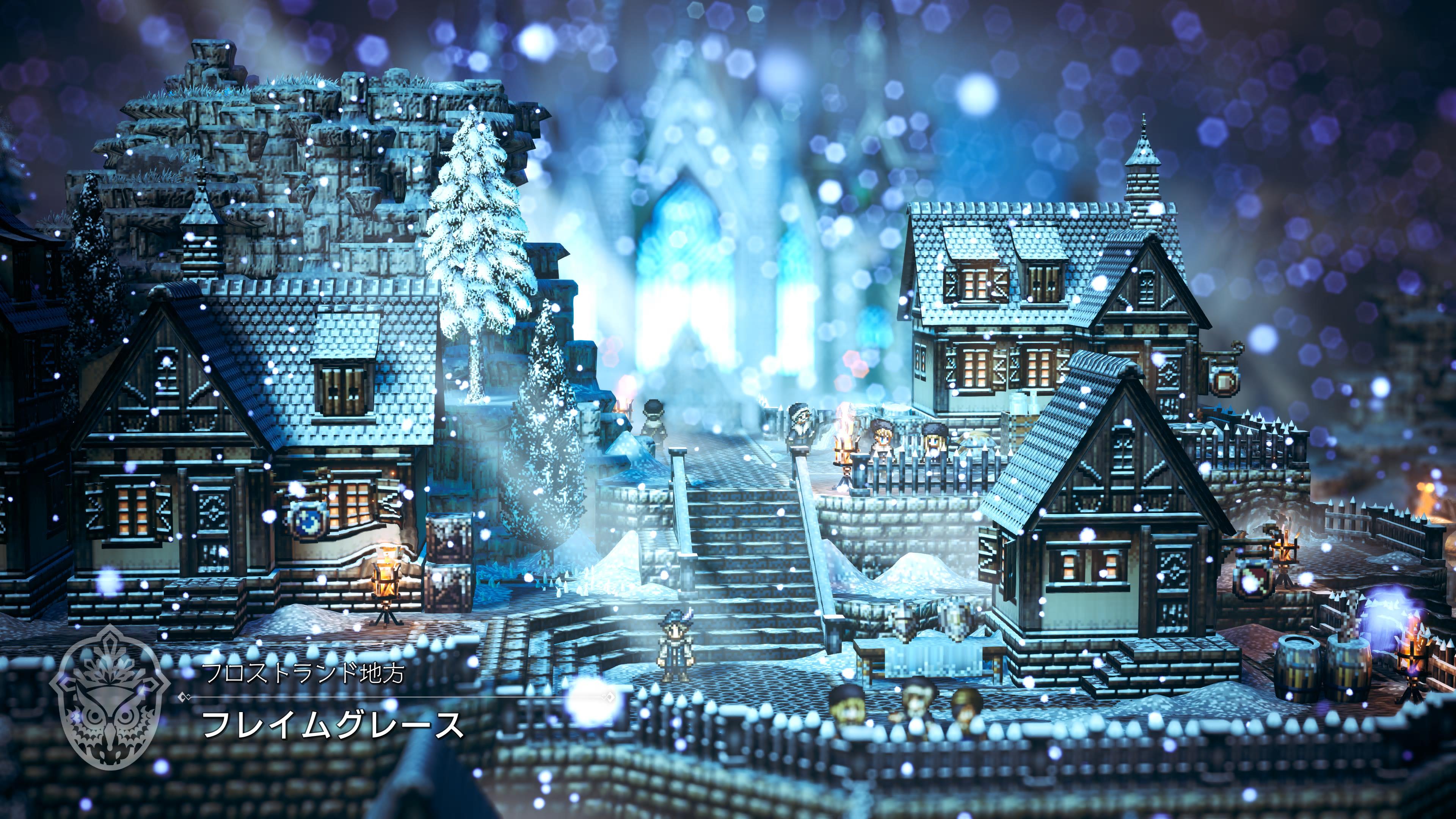 - 過去作同様、HD-2Dを利用した、ドット絵と3Dを融合した独特のグラフィックは相変わらず美しいです。です。前作同様美しさについては文句なし。また奥行きも表現されているので、物陰に宝箱や隠し通路などが配置できるようになっていて、たんなる2Dゲーにはなっていません。