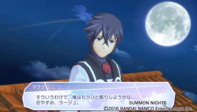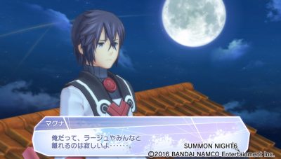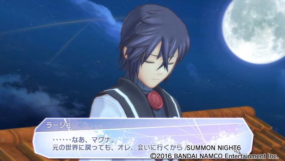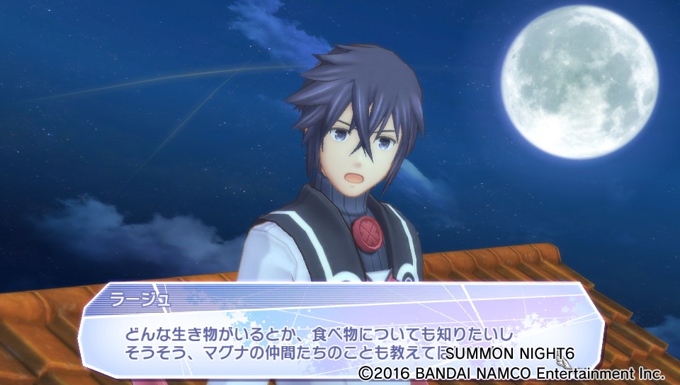 屋根の上で星を眺めるマグナ。星空一つとってもリィンバウムとは違います。