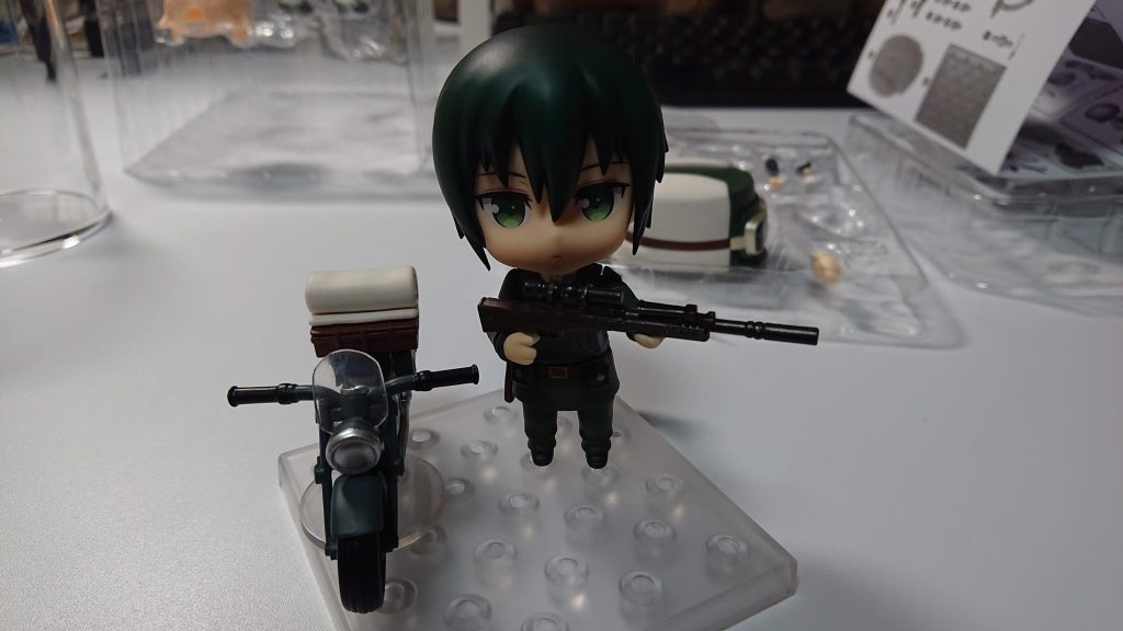 水着アクスタもいいですけど、やっぱりキノは武装してなんぼだと思うのでこちらのアクスタを購入しました。キノが持っているフルート(長距離用パースエイダー)はアニメでの設定通りのデザインになってるみたいですね。え?水着アクスタも買いましたけど何か。