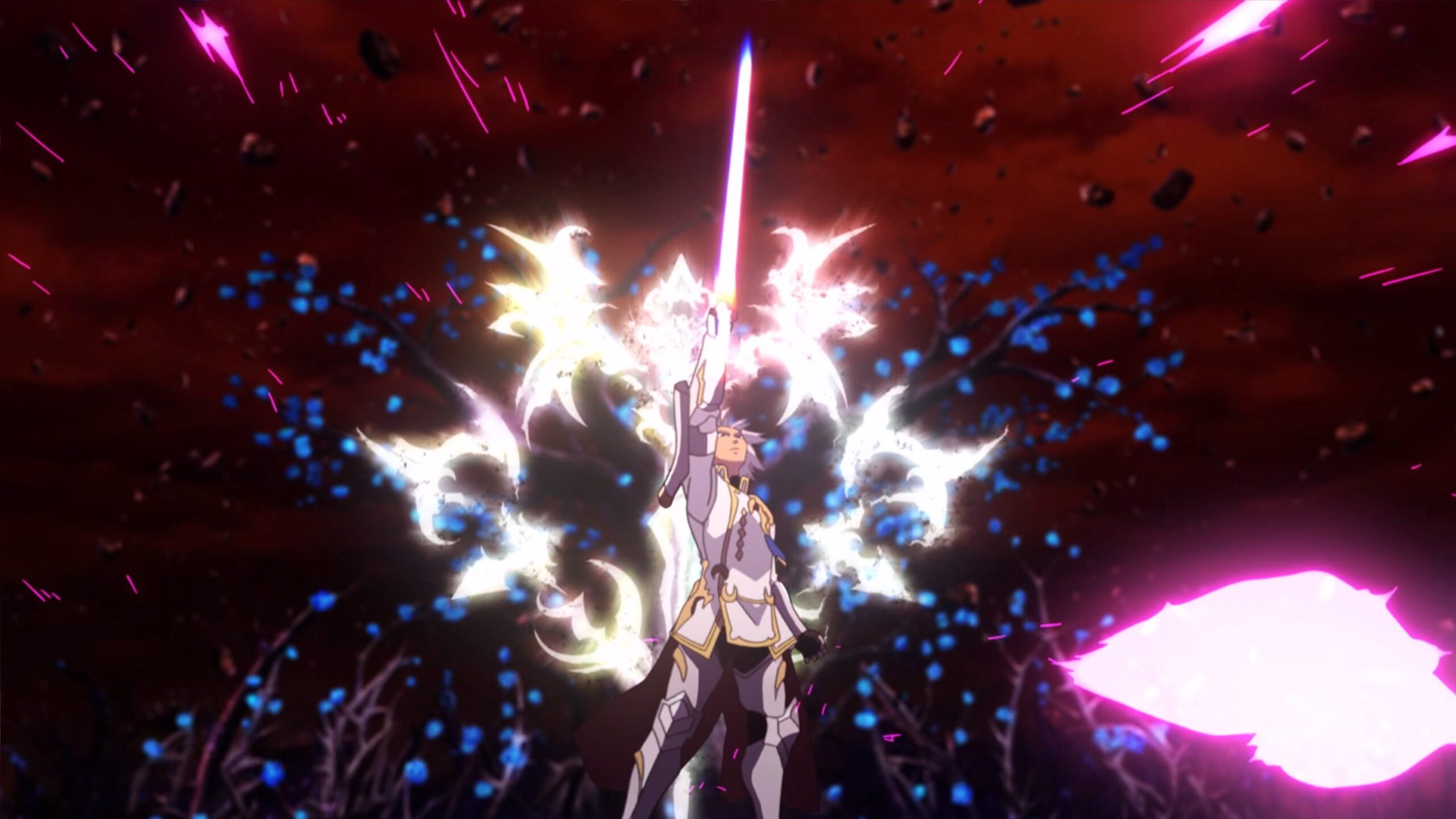 アルフェンの一撃が星霊のコアを砕くと、星霊からレナス=アルマが分離しました。アルフェンはすかさずそれを確保すると、そのままシオンと一緒に儀式を発動します。よっしゃ、これで勝った!