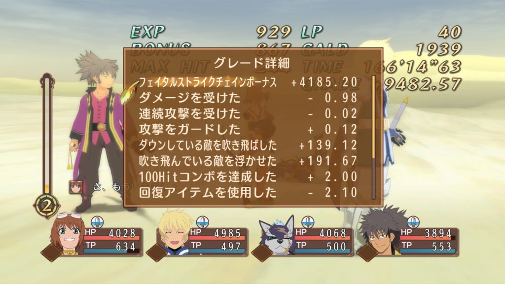 そしてあっという間にこの通り。160分ほどの放置でグレードが9000以上稼げました。もう1回やれば必要グレードには十分です。リタ先生ありがとう。こういうところも好きです。そもそも150コンボのトロフィーイラストがリタの顔になっているのも、この技を使えという開発者からのメッセージのような気がするわ。