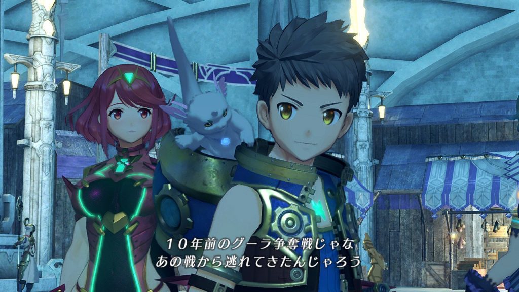 一方ホムラとカグツチは、500年前の思い出話をしていました。カグツチも当時の記憶は失っていますが、日記を付けることで過去を記録しているようです。他にもそういうことをしているブレイドは少なくないようですが、コアクリスタルに戻った時に日記はそのままになりますから、日記自体が物理的に失われる可能性も高いでしょう。また仮にそうならなくても、再同調したブレイドは日記の存在自体に関する記憶を失っていますから、再びその日記を自分の日記として手にできる可能性はかなり低いでしょうね…。結構悲しい話です。カグツチは多分、普段帝国に預けてるんでしょうね。