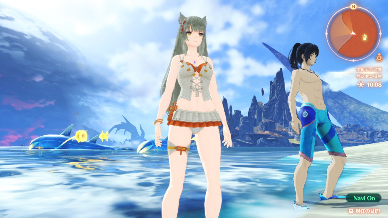 デフォルトの服装より露出が下がっている感ある。水着のラインと肌のエーテルラインがいい感じにシンクロしていますね。